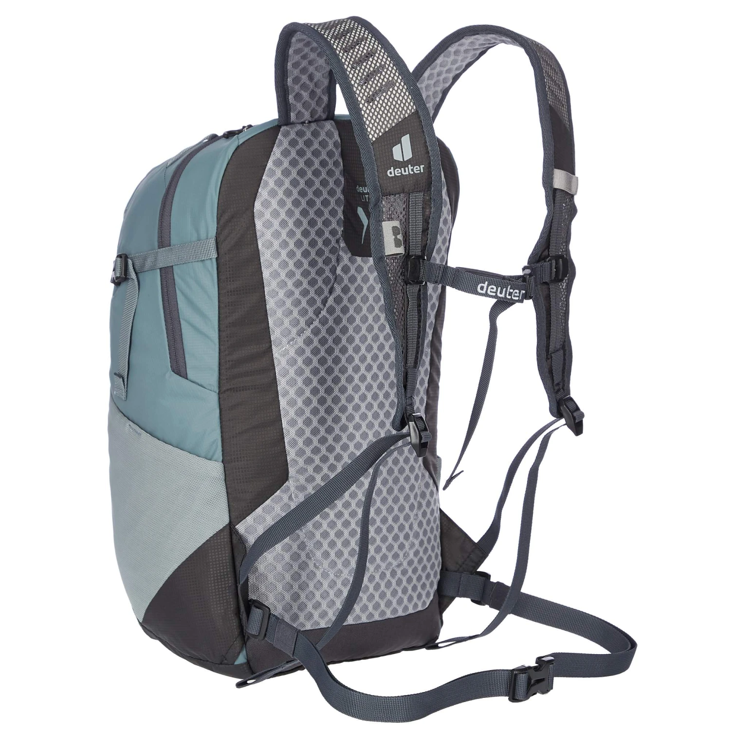 Der V-Schnitt schenkt dir viel Bewegungsfreiheit und einen optimalen Schwerpunkt. Das Rückenpolster wird dank Mesh-Einsätzen gut belüftet und auch die Schultergurte sind luftdurchlässig. Durch den höhenverstellbaren Brustgurt und den abnehmbaren Bauchgurt kannst du den Rucksack deinen Bedürfnissen in Sachen festem Halt anpassen.