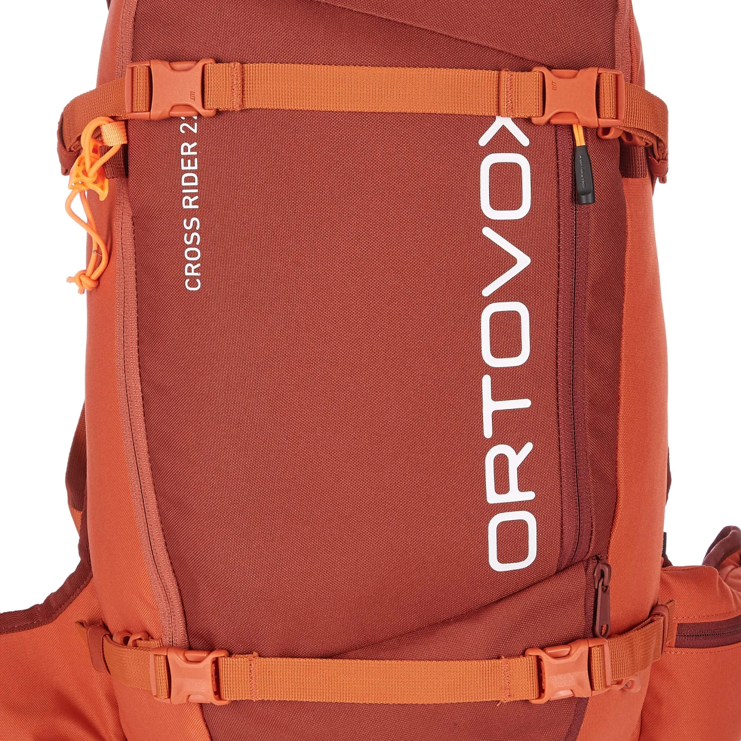 Das Hauptfach des Cross Rider 22 ist sowohl über die Front als auch den Rücken zu erreichen. Innen befindet sich ein separates Organizerfach für die Lawinenschaufel und Sonde. Hier findest du auch die Notfallkarte für den Ernstfall. Das äußere RV-Fach für die Winterkarte ist besonders auf Touren praktisch. Ein weiteres RV-Fach befindet sich in Griffweite auf dem Hüftgurt.