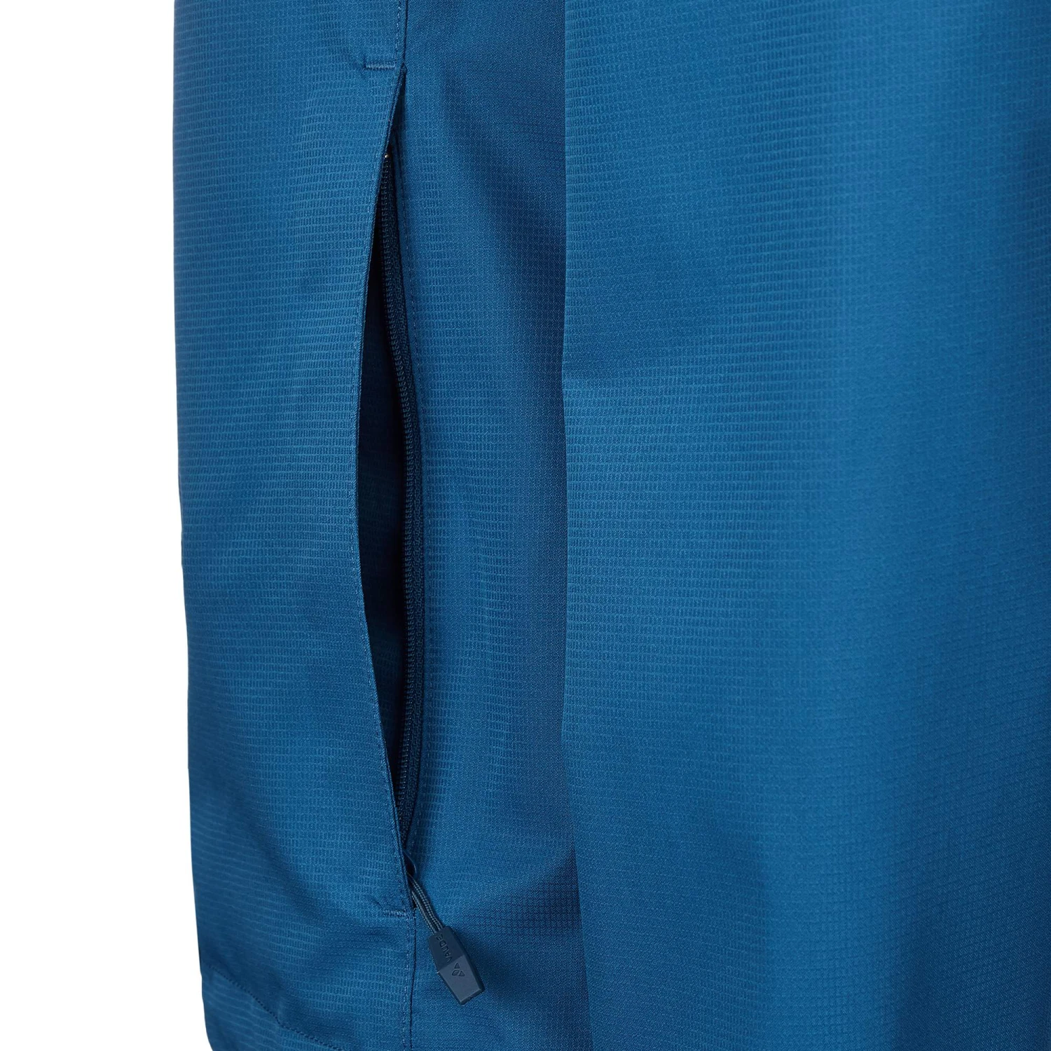 Die leichte Regenjacke ist windabweisend, atmungsaktiv und natürlich wasserdicht. Innen befindet sich ein luftiges Netzfutter; der Kragen hat einen weichen Besatz. Die große Kapuze lässt sich per Klett und Schnürzug regulieren und kann im Kragen eingerollt verstaut werden.