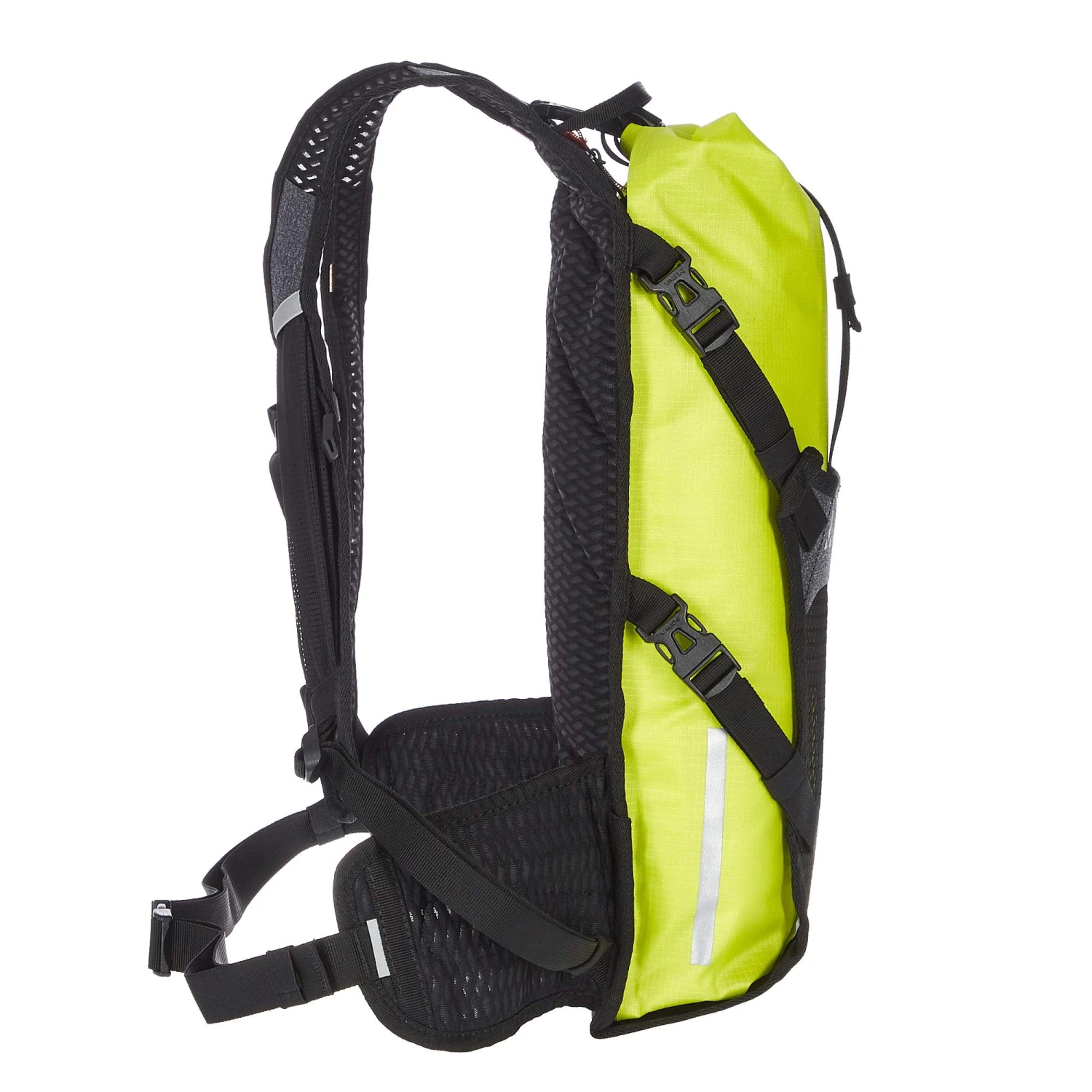 Kompakter Rucksack fürs Bikepacking mit wasserdichtem Packsack. Den Sack mit Rollverschluss kannst du flach an die Rückenplatte andrücken. Das erlaubt es dir, andere, sperrige Dinge zu transportieren.